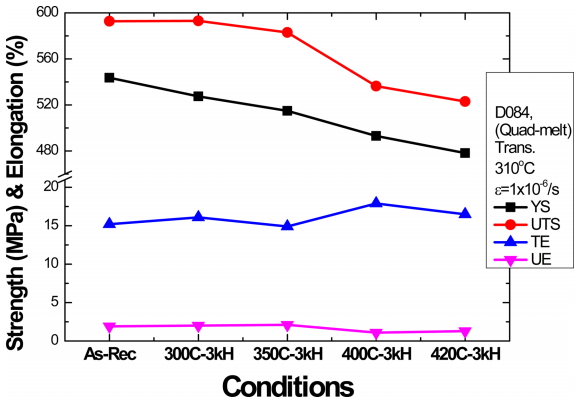 Mechanical properties at 310 °C with aging conditions in the transverse direction
