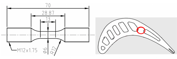 °C이다. 열처리 조건은 그림 1에 제시하였다. 그림 2는 시편의 형상과 장시간 사용된 블레이드의 시편 채취 위치를 나타내 것이다. 시편의 형상은 ASTM E 2714에 따라 가공하였다. 장시간 사용된