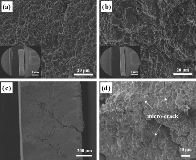 SEM images showing the fracture surfaces of steel D after SSRT tests: (a) evaluated