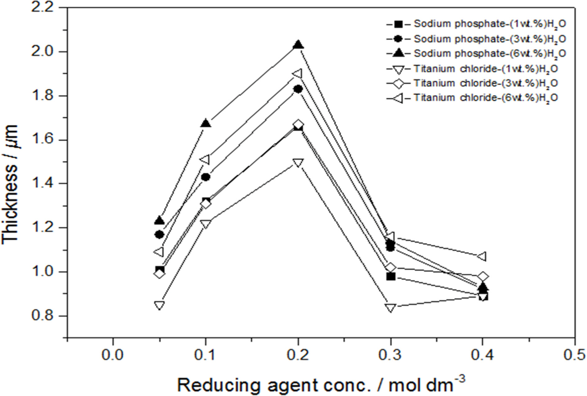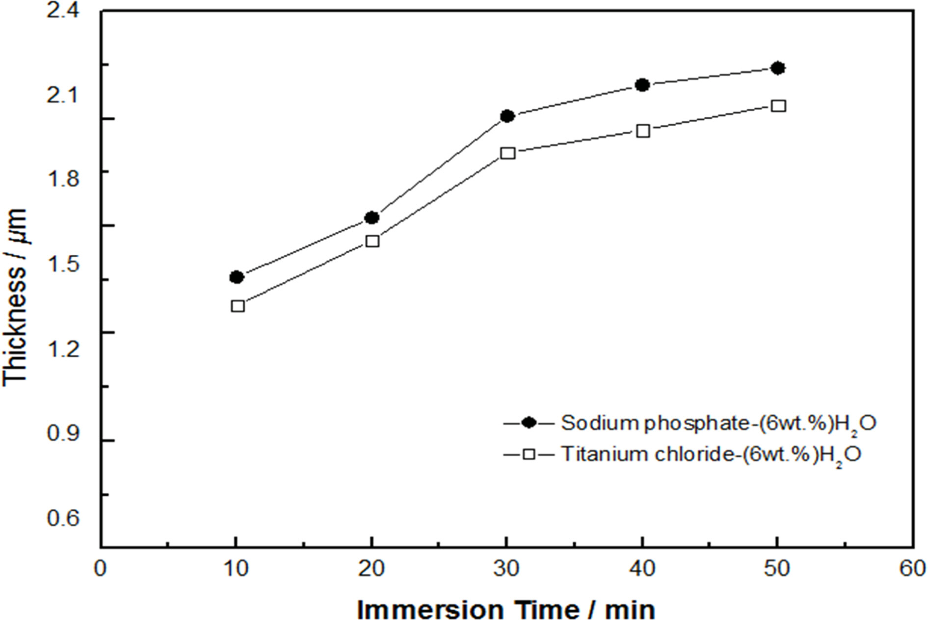 As shown in Fig. 5, the plating thickness increased when both sodium phosphate and titanium chloride