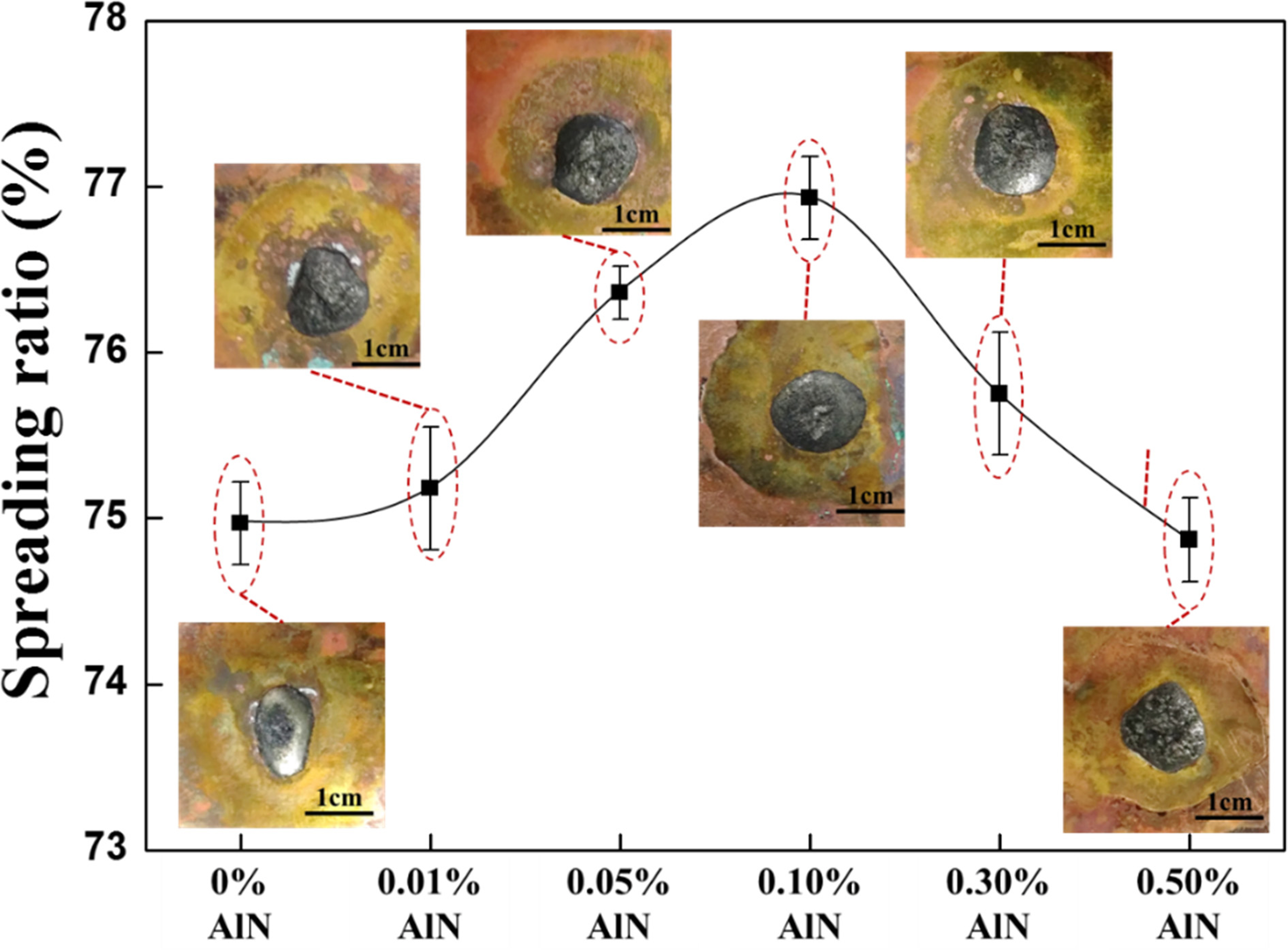 (3) The spreading ratio drastically increases by addition of AlN nanoparticles up