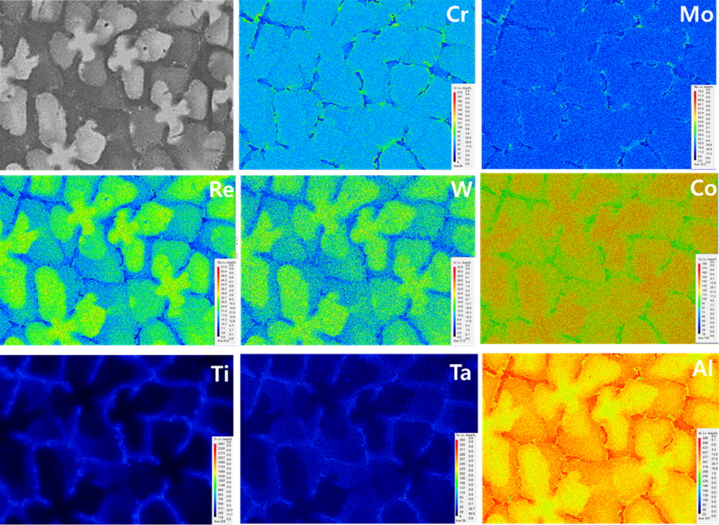 EPMA map showing an alloy elements distribution after heat treatment in the specimen