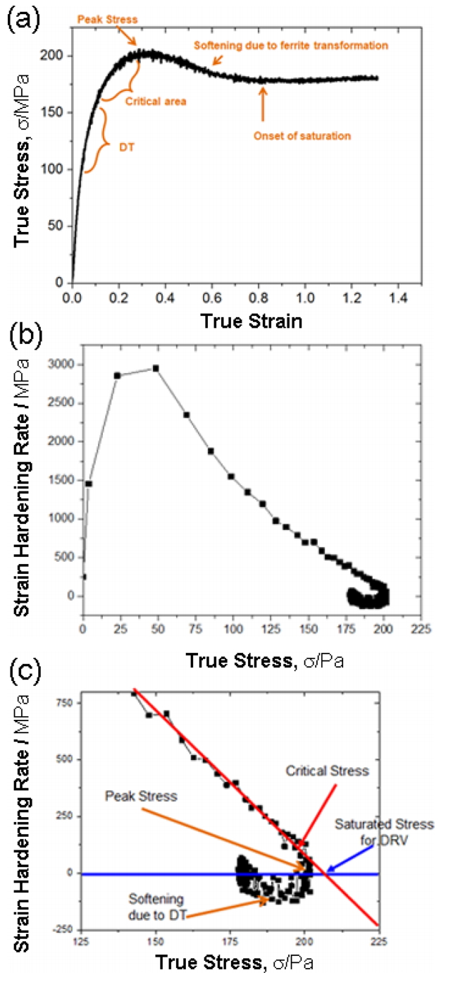 동적 상변태의 결과이다. 결국, 높은 변형율 속도와 낮은 변형 온도와 같은 특정 조건에서 변형율 속도와 변형 온도에 따른 기울기(dθ⁄ dσ)가 크게