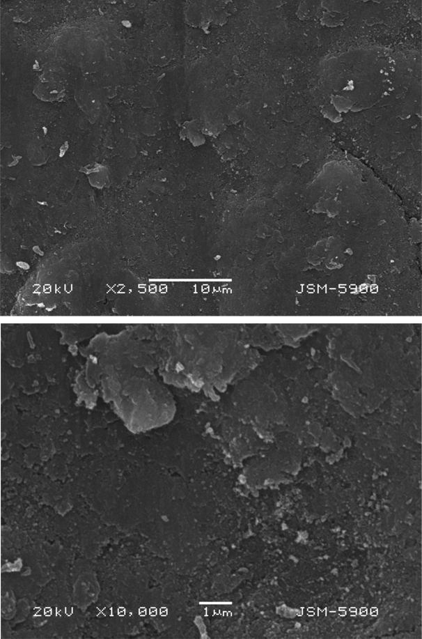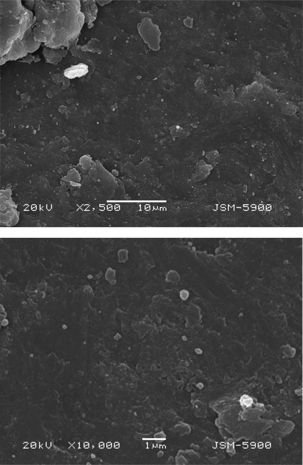 SEM micrographs of the as-prepared Mg-5PVDF are exhibited in Fig 2. Particle sizes were not homogeneous. The surfaces of the particles were quite flat