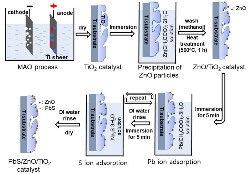 cycle 1, and the PbS/ZnO/TiO2 photocatalyst was prepared by repeating each cycle 5 times. The fabrication process
