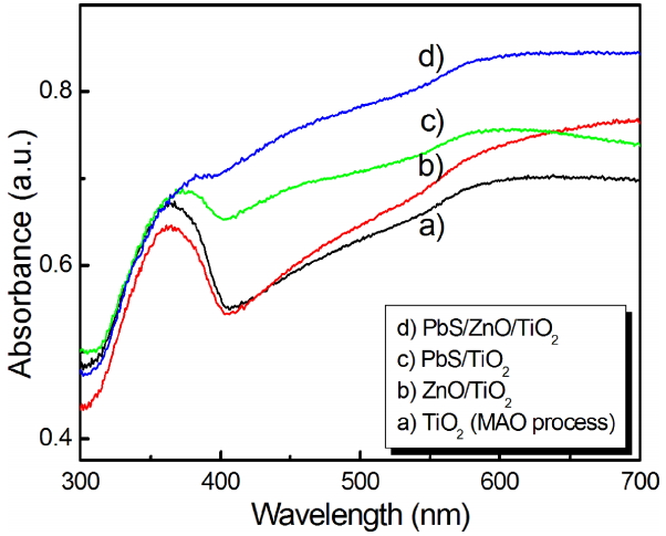 For this purpose, TiO2 photocatalyst was prepared by the MAO process, and then a ZnO-deposited TiO2 layer was fabricated. Finally, PbS quantum dots (QDs) were deposited directly on