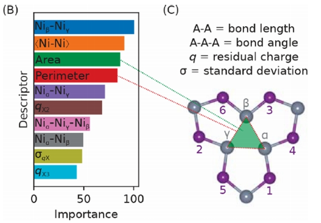 radius) 등을 입력으로 사용하여 기계 학습을 진행한 결과 0.12 eV 의 평균제곱근오차(RMSE)로 일산화탄소의 흡착에너지를 예측하였다. 또한