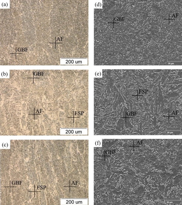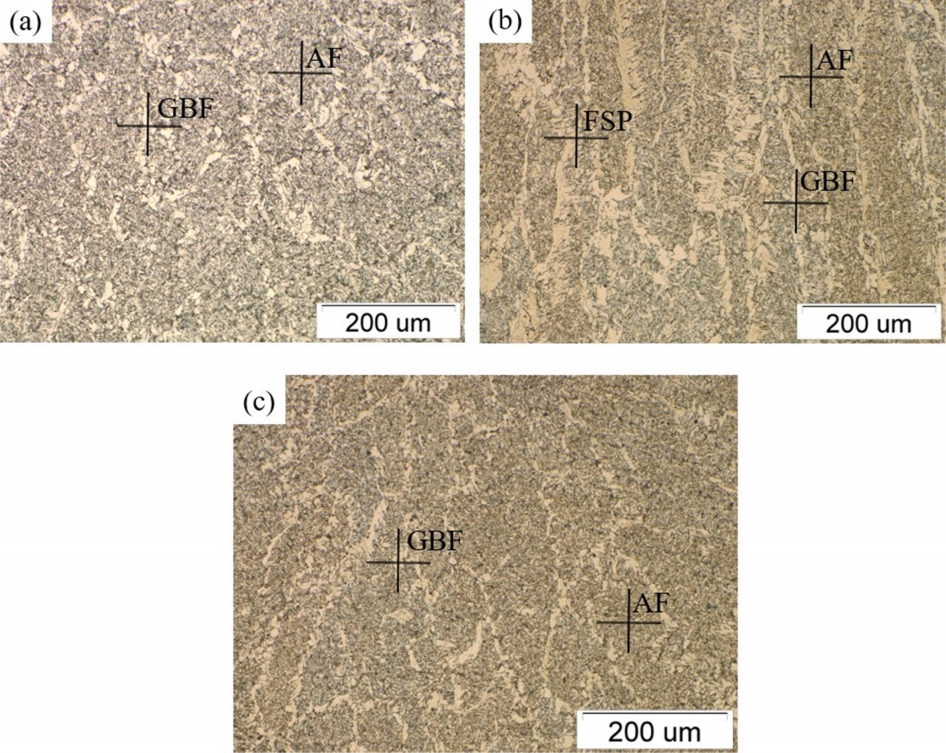 ID-A, (b) ID-B, (c) ID-C (GBF : Grain Boundary Ferrite, AF : Acicular Ferrite, FSP