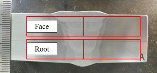 총 6 포인트에 대해 비커스 경도시험(10 kgf)을 실시하였다. 또한, 충격시험은 그림 3과 같이 루트부와 표면부로 구분하여 각 위치에서 3개씩 1세트로 실시하였다.