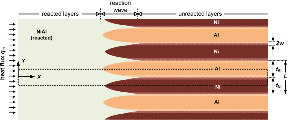 The intermetallic reaction between the Al and Ni multilayers is assumed to follow