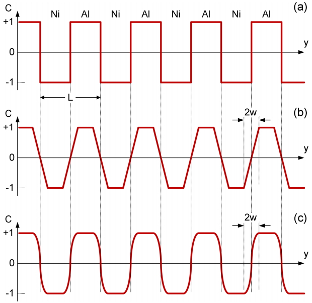 For atomic species concentration, C = 1 is meant for pure aluminum and C = -1 is for pure nickel. The species concentration will go from 1 or -1 toward zero
