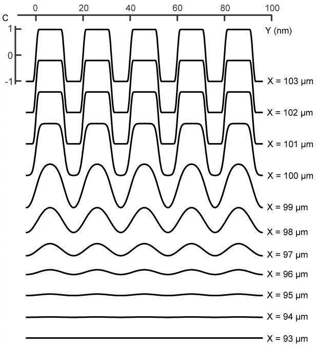 Therefore, this study employs a sinusoidal form for the initial distribution of species