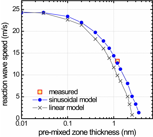 model of atomic pre-mixing indicated the reaction wave speed reaches a maximum of
