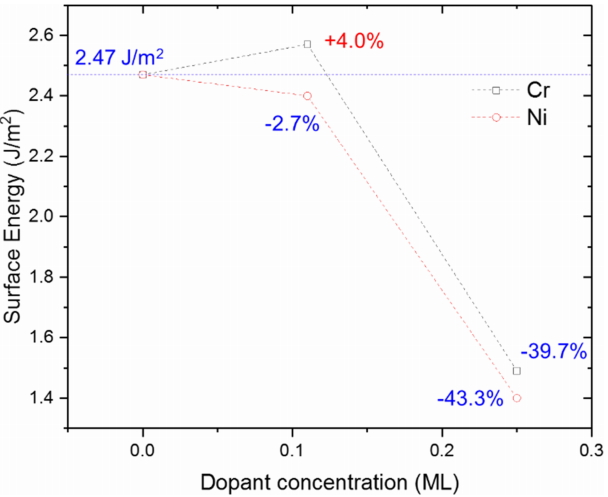 Effects of addition of Cr and Ni to α-Fe on the surface energy. Dopant concentration