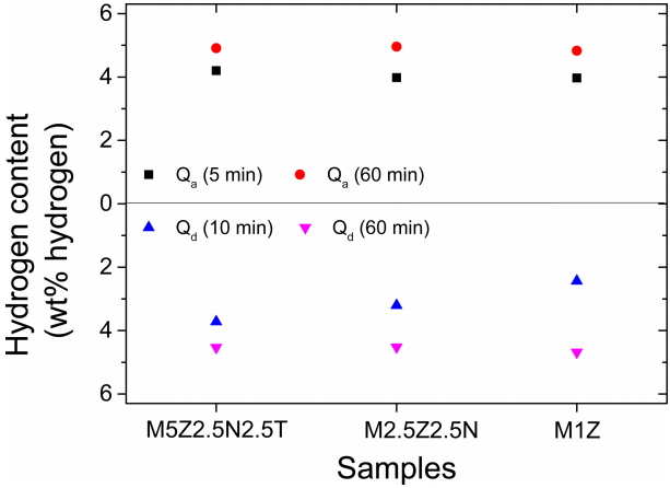 order by M5Z2.5N2.5T and M1Z. M2.5Z2.5N absorbs 3.13, 4.75, and 4.96 wt% hydrogen