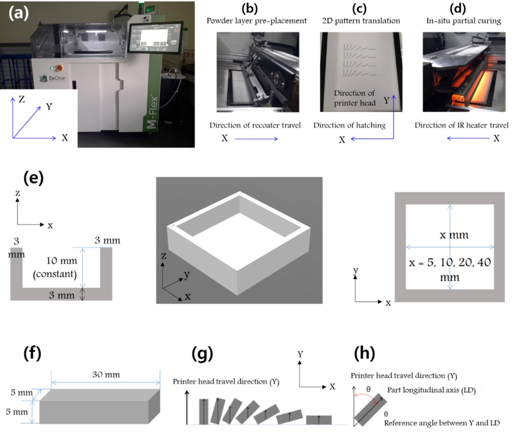 and the part longitudinal axis, as illustrated in Fig 1 (h). The process parameters for binder jetting AM are summarized in Table 1. The as-built parts were cured at 463 K for 8 hours in an inert environment. During