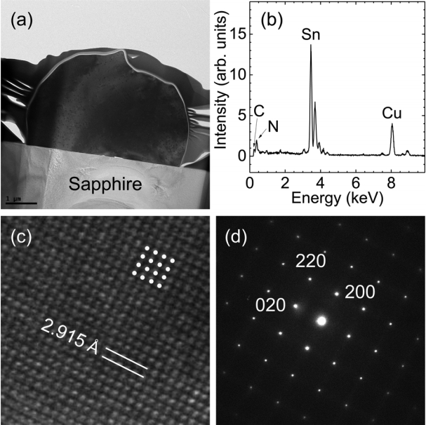 TEM measurement. The structural properties of the Sn crystals were characterized using