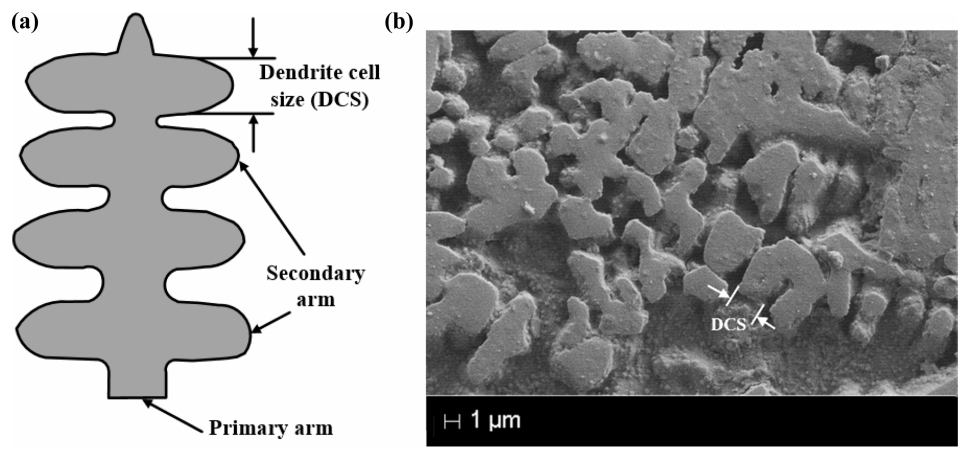 조직(dendritic structure)은 SEM을 이용하여 분석하였다. 미세 경도 측정은 비커스 경도기를 이용하였으며, 100 g의 압입자를 10초동안