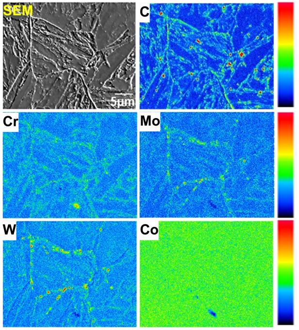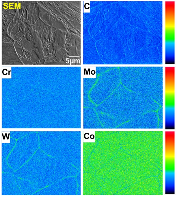 C, Cr 외에 상당한 양의 Mo, W이 원자상태로 결정립계에 편석되어 있음을 알 수 있었다.