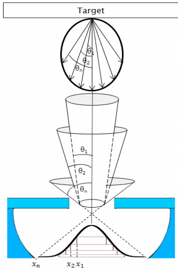 where xi is the scalar length of the vector, θ is the cone angle, a is the length of the short axis, b is the length of the long axis, and ρ is b/a. As shown Fig 1, each of the fluxes passing through the hole is deposited continuously on the bottom