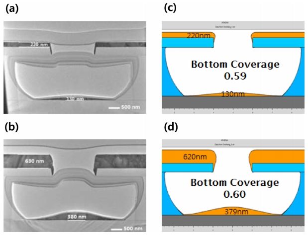 aspect ration 10 is simulated based on the optimized sputtering conditions and compared