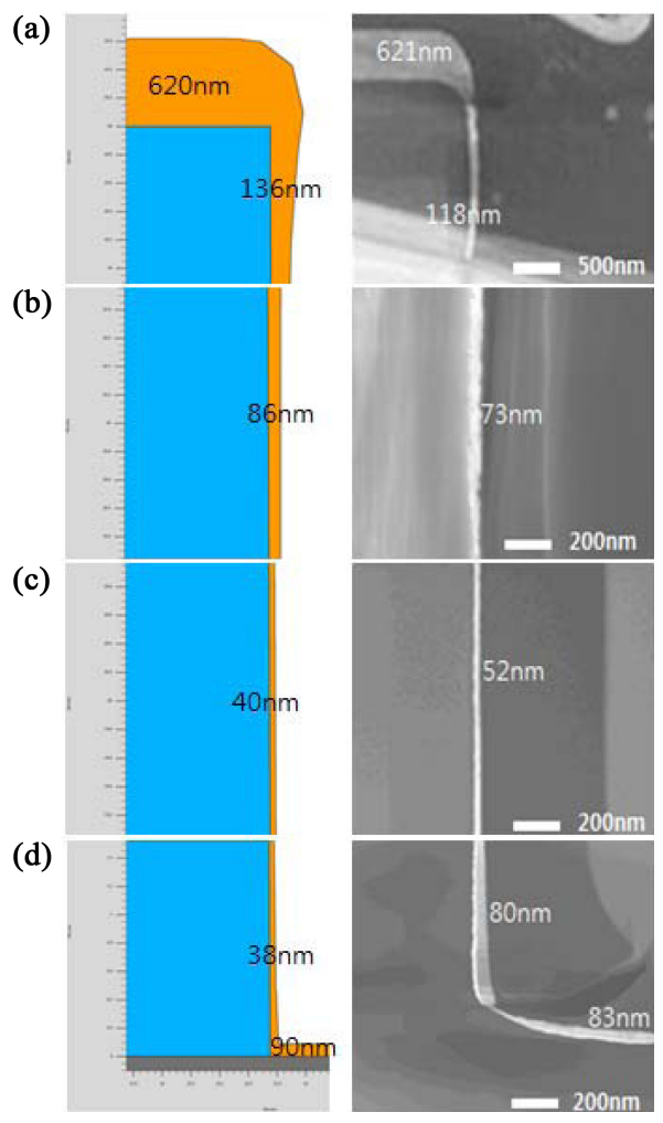 the sample-target distance of 380 mm. Then the profile and step coverage are measured