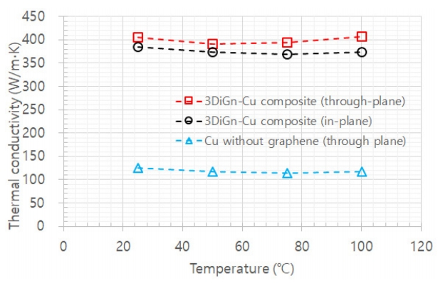 TCs of 3DiGn-Cu composite and Cu without graphene.