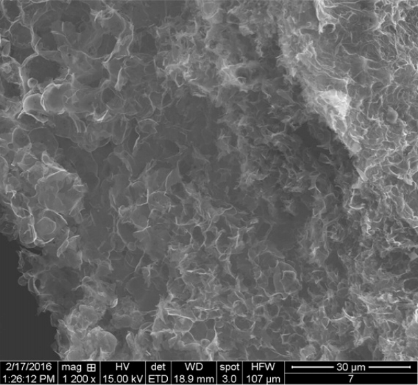 SEM image of three-dimensionally interconnected graphene network (3DiGn).