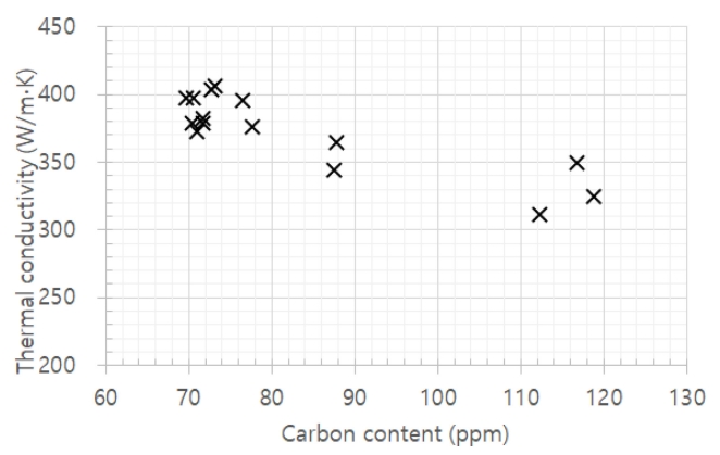 TCs vs. carbon content of 3DiGn-Cu composites.
