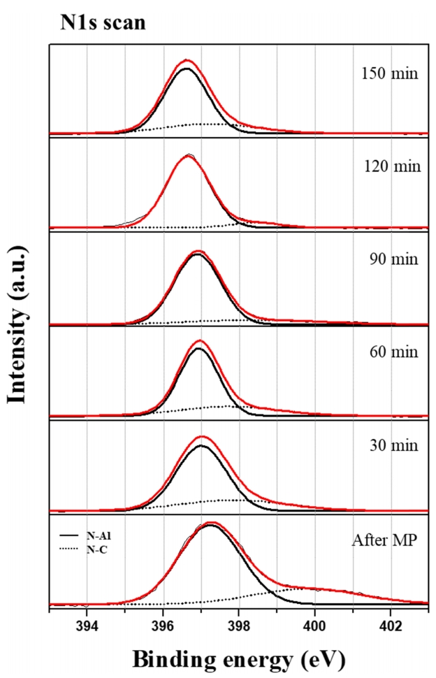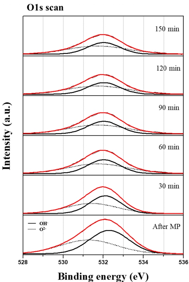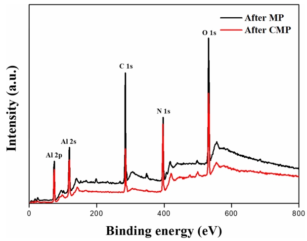 Japan). Chemical changes on the polished surfaces using MP to CMP were analyzed via