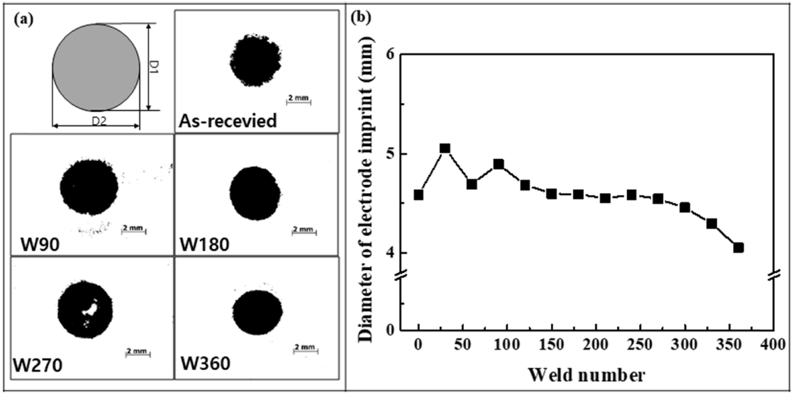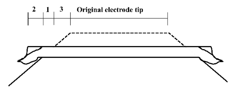 Changes in shape of the cross-sectioned electrode surface according to weld number