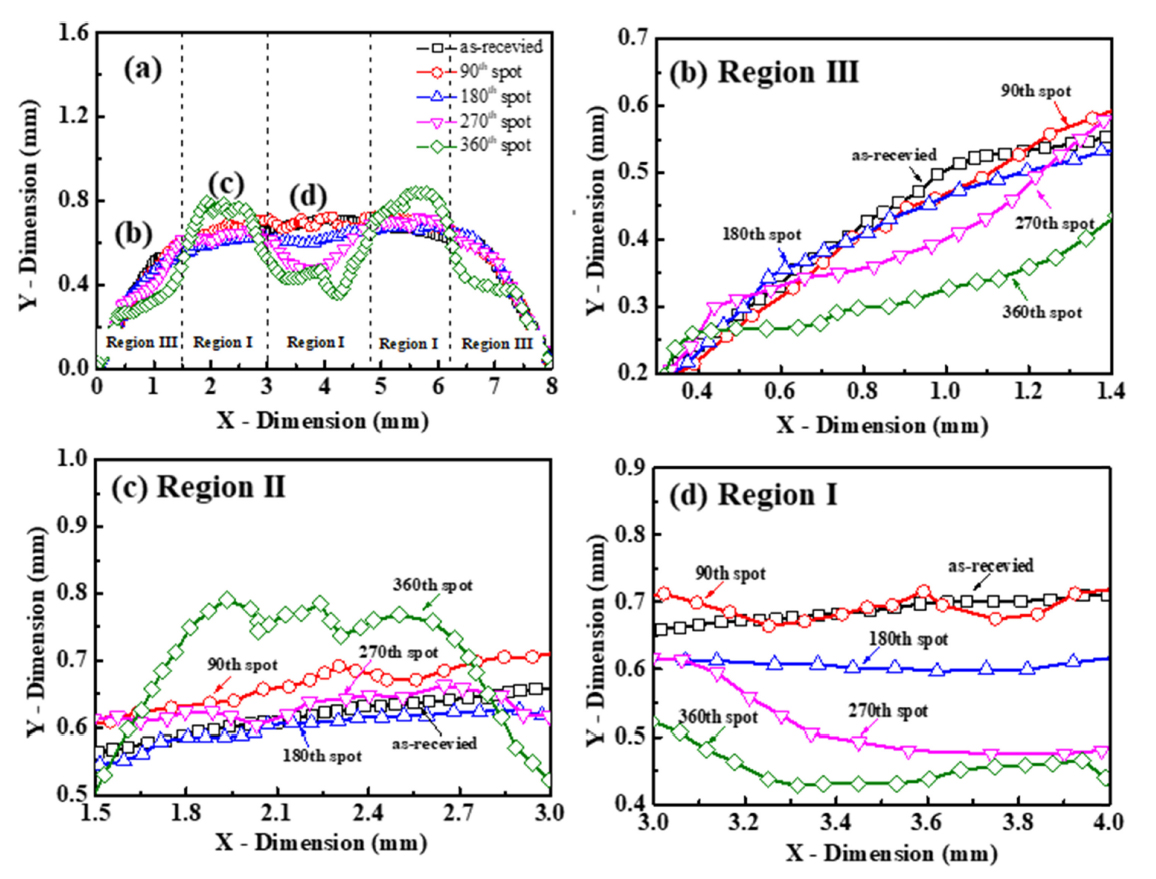 electrode; (a) 90th spot; (b) 180th spot; (c) 270th spot; (d) 360th spot.