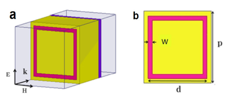 그림 3은 배면을 도체로 단락시킨 카보닐 철 분말 복합재 위에 square-loop FSS (SL-FSS)를 부착시킨 전파흡수체의 단위 셀 구조도이다. 단위