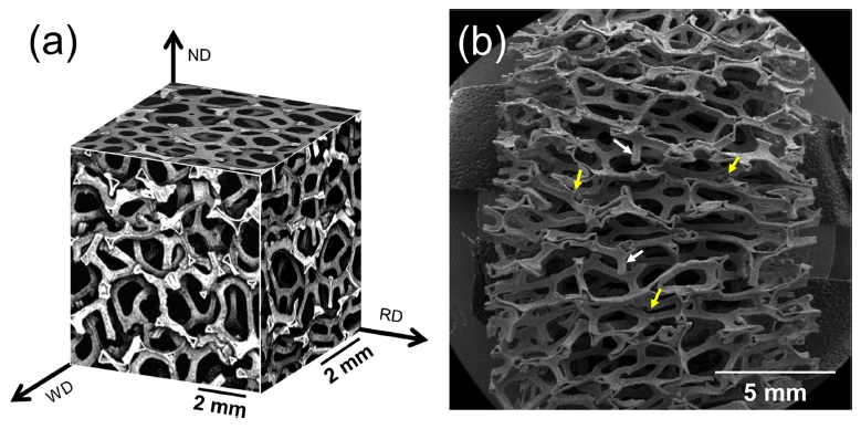 high-resolution micro-CT)๋ฅผ ์ด์ฉํ์ฌ ๋ธ๋ก(block) ๋ค๊ณต์ฒด์ ๊ตฌ์กฐ์ ์ธ์๋ฅผ ์ ๋ํ ํ์๋ค. ์ด ๋ ๋ถ์์ X-ray source