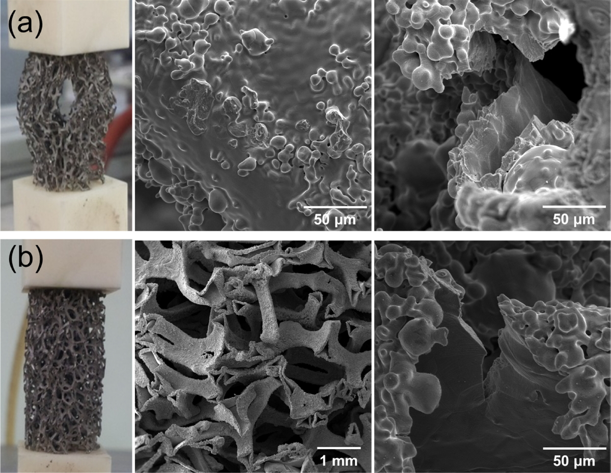 ๊ตฌ์กฐ์ ์ธ ํน์ง๊ณผ ๋๋ถ์ด ๋ค๊ณต์ฒด(foam)์ ๊ธฐ๊ณ์ ํน์ฑ์ ๋ณํ์ํค๋ ์ธ์๋ก๋ ์ง์ฃผ(strut) ๋ด๋ถ์ ๋ฏธ์ธ์กฐ์ง์ด ์์ผ๋ฉฐ ์ด์ Ni-Cr-Al ๊ธ์