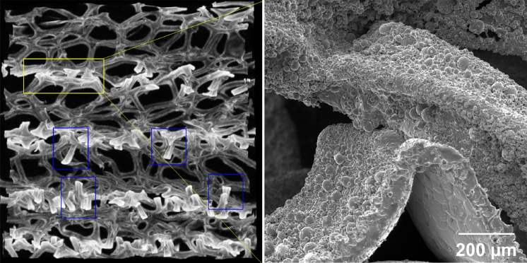 (tetrakaidecahedron)๊ฐ ํผ์ฌ๋ Weaire-Phelan bubble ํํ๋ก ๊ตฌ์ฑ๋์ด ์์๋ค. ์ ์กฐ๊ฐ ๋ ์์ Ni ๋ค๊ณต์ฒด์ ๋ฐ์ธ๋(binder)์