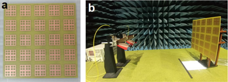 (a) Test sample of GPMA (50 cm × 50 cm size) and (b) measurement system for reflection