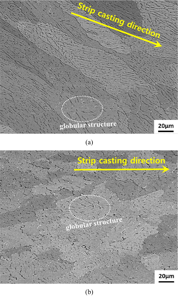 ๊ธ๋ ์๊ณ ์กฐ์ง์ strip casting ๊ณต์ ํน์ฑ์ ์ฉํ์์ ๋ฐ๋ก ํ์ฌ๋ก ์ ์กฐ๋๋ฉด์ ๋ถ์ฌ๋๋ ๋น ๋ฅธ ๋๊ฐ ์๋์ ์ํด ์๊ธธ ์ ์๋ค๊ณ ๋ณด๊ณ ๋ ๋ฐ