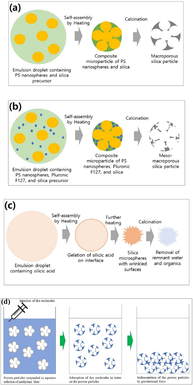 Figure 1(d) contains a schematic figure for the adsorption process using porous silica particles.