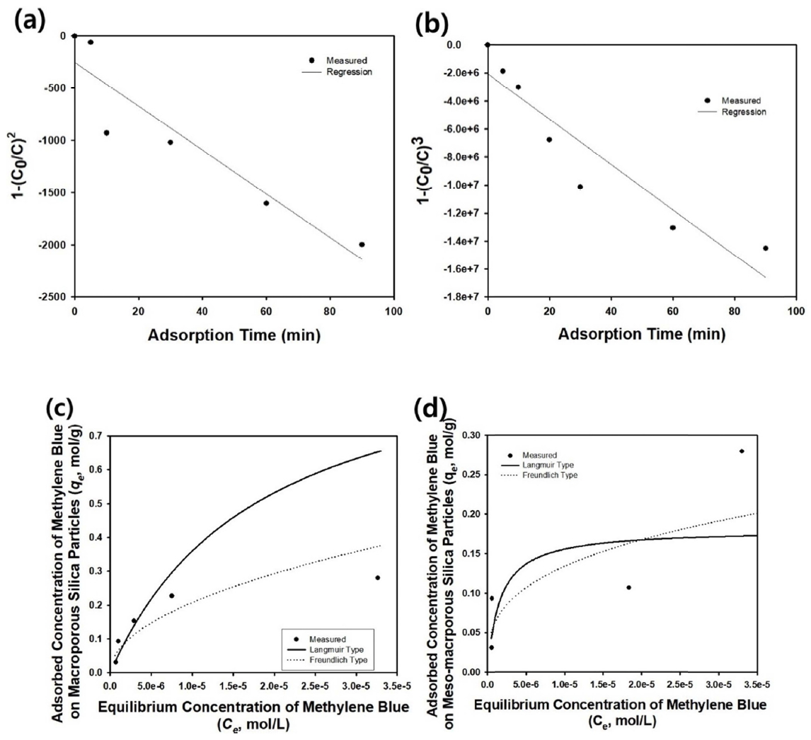 estimated by regression of the experimental data are shown in Table 4. From the adsorption isotherm data shown in Figure 5(d), the maximum equilibrium adsorption capacity of methylene blue on the mesomacroporous