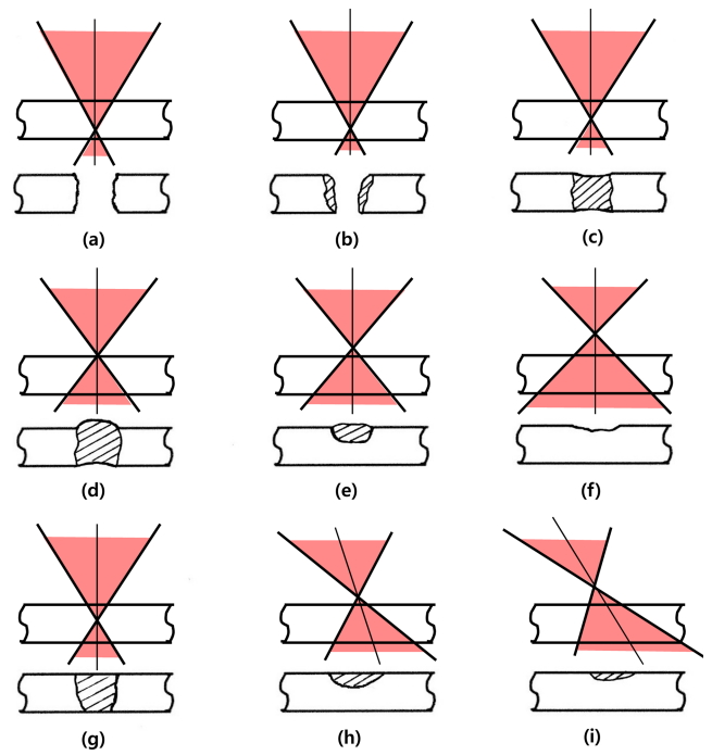 레이저 방식이나 빔의 모드가 달라지거나, 재료가 바뀌면 레이저 흡수율이 달라져 같은 출력에서도 빔의 최고온도와 온도분포는 달라지게 된다.