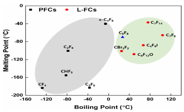다양한 PFC 가스와 L-FC의 boiling point를 그림 2에 나타냈다.