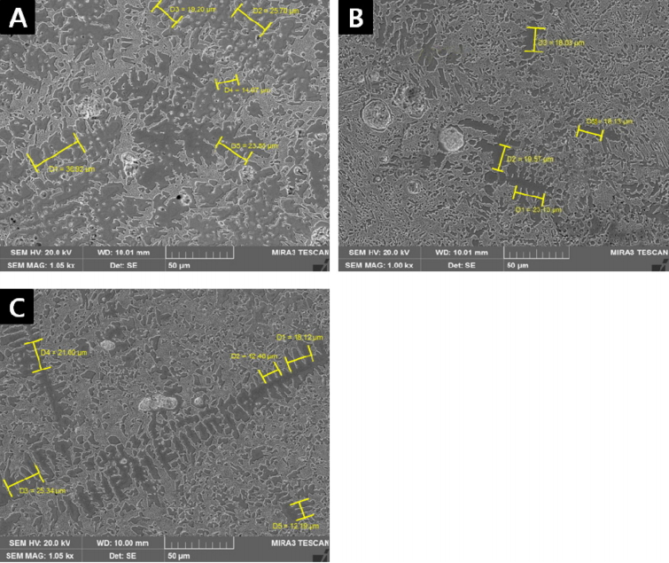 Bronze Sword Secondary Dendrite Arm Spacing. (A)Ga-53, (B)Na-4, (C)Na-23.