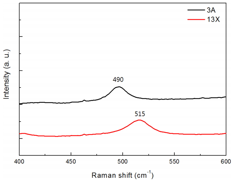 그림 3에는 3A 제올라이트와 13X 제올라이트의 Raman 분석 결과를 나타내었다.
