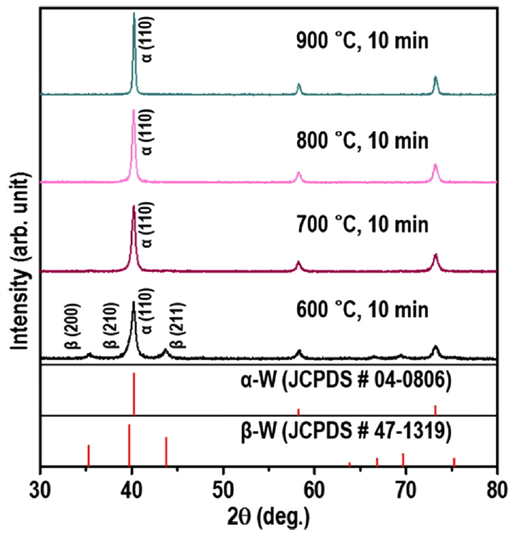 for annealing was increased from 700 °C to 900 °C, the main peak of the α-W phase,