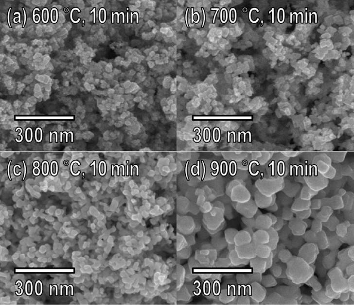 by RF induction thermal plasma was annealed in an H2 reductive atmosphere. The conditions for H2 reductive annealing were an H2 flow rate of 0.5 L/min, Temperature of 600-900 °C and 10 min process time.