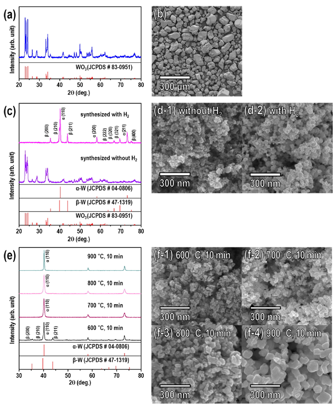(700-900 °C) the WO3 was completely transformed into the α-W phase.