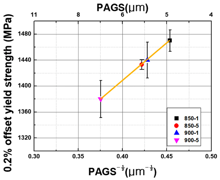 Relationship between PAGS (prior austenite grain size) and yield strength according