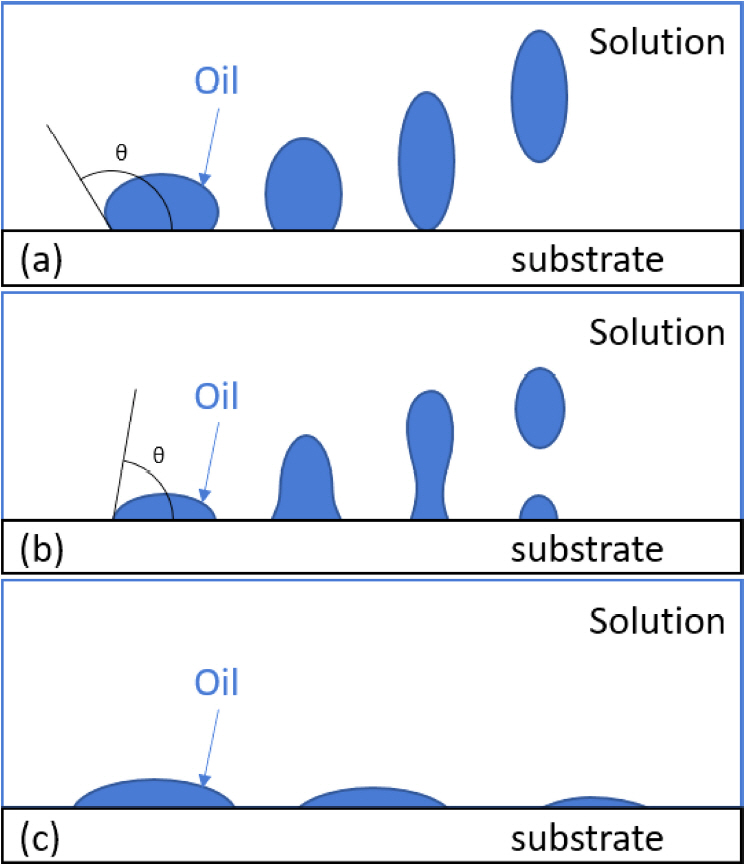 mechanisms. Depending on the interaction between the solution, oil, and substrate,