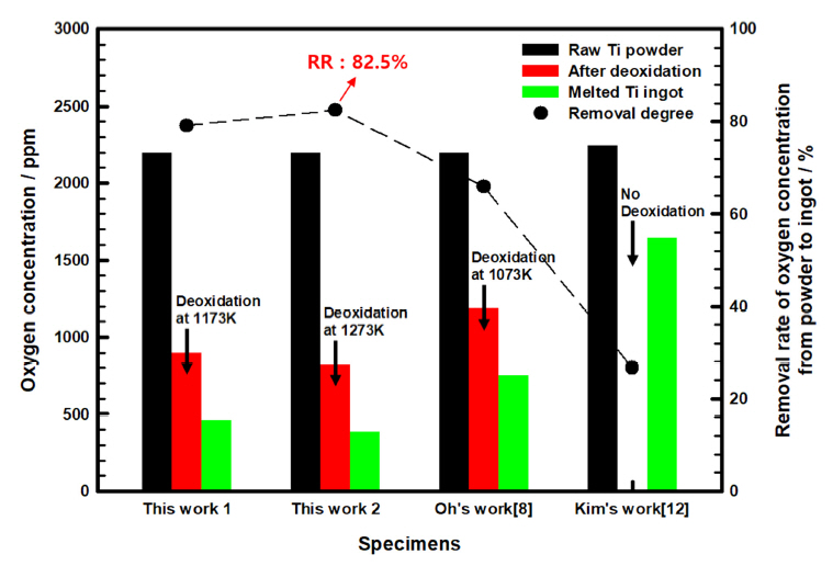 formation during melting [9]; however, reducing the oxygen in titanium is difficult because its affinity with